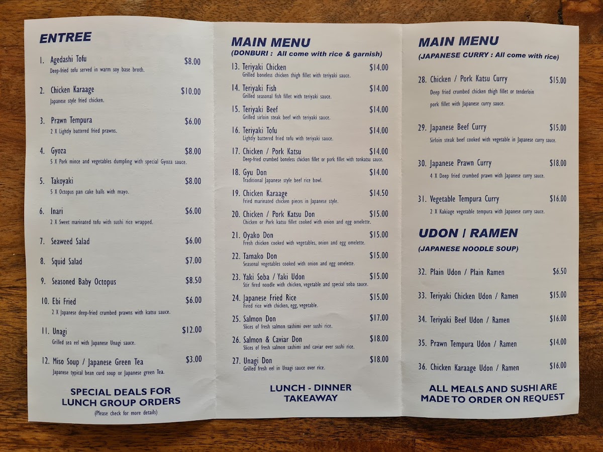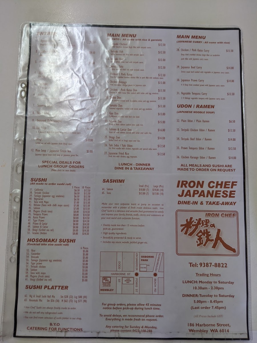 Iron Chef Dine-In & Takeaway offers a rich and varied menu that caters to a wide range of tastes, perfect for both dine-in and takeaway experiences. Their entrée selection includes crispy Agedashi Tofu, succulent Chicken Karaage, crispy Prawn Tempura, and flavorful Takoyaki and Gyoza, making it easy to begin your meal with a burst of deliciousness.