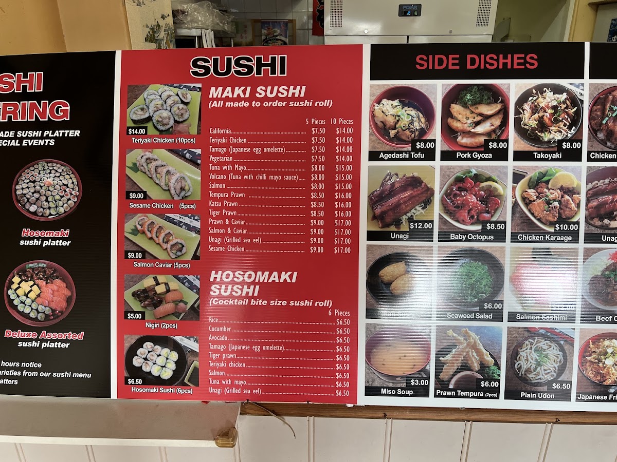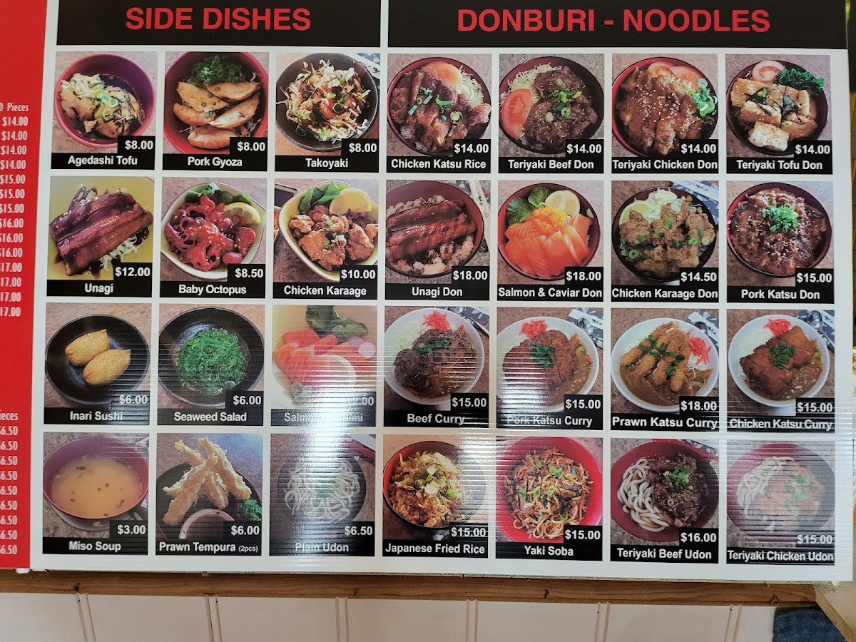 Moving to the main menu, the restaurant offers classic Japanese favorites such as Teriyaki Chicken, Teriyaki Fish, and Teriyaki Beef. For those preferring a vegetarian option, there’s the Teriyaki Tofu as well. Additionally, you can indulge in Gyu Don, a hearty beef bowl, or opt for the vegetarian-friendly Teriyaki Tofu. These main dishes combine tender proteins with savory, balanced flavors, perfect for a satisfying meal.